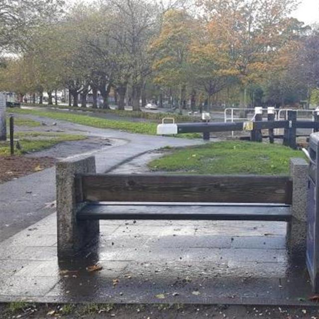 A bench commemorating Patrick Kavanagh by the canal near the Lock.