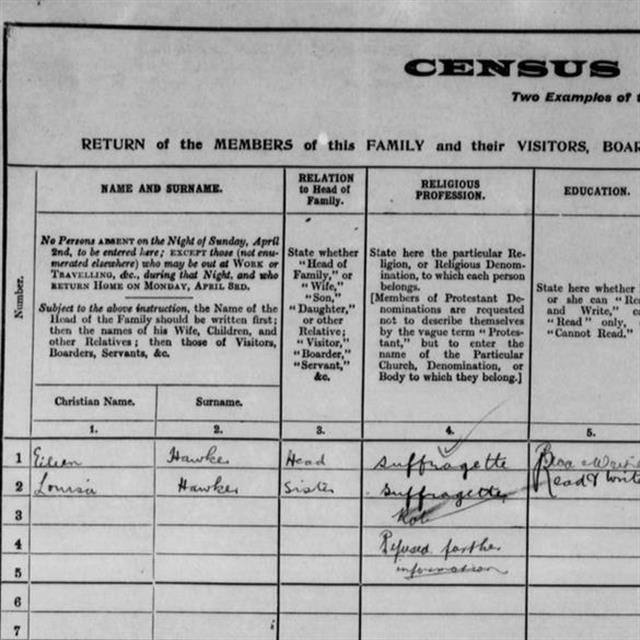 Here the Hawke sisters listed their Religion as Suffragette in the 1911 Census