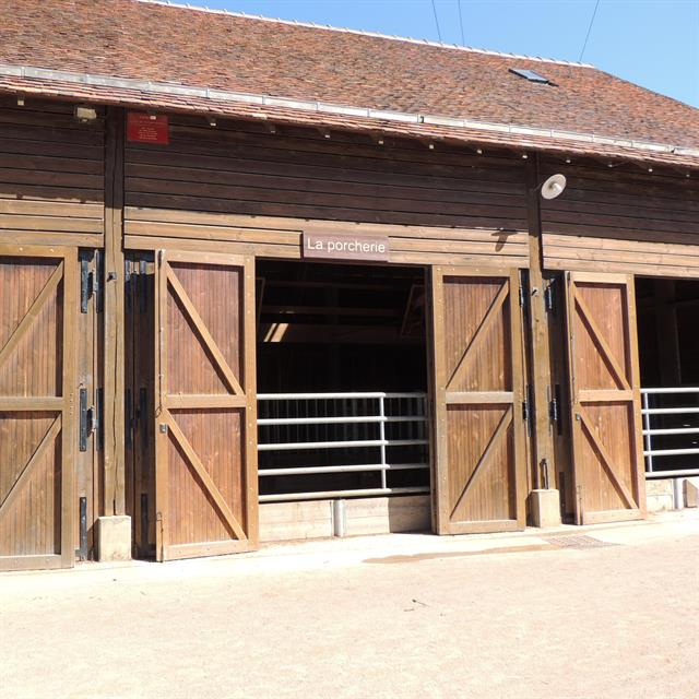1 minPénètre dans le bâtiment réservé à nos amis les cochons et les vaches