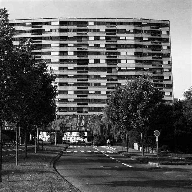 1 minCette barre HLM enjambe la route tel un écho au pont à ses pieds...